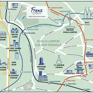 Comprising 43 rooms, Frenz Hotel Kuala Lumpur is close to a central district, 25 minutes' walk from the intricately detailed South Indian Sri Maha Mariamman Temple. Situated 35 km from Sultan Abdul Aziz Shah airport, the hotel features 24-hour front desk assistance and wake-up service, as well as cars for rent.